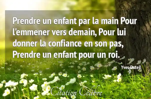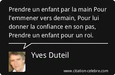 Prendre un enfant par la main Pour l'emmener vers demain, Pour lui donner la confiance en son pas, Prendre un enfant pour un roi.