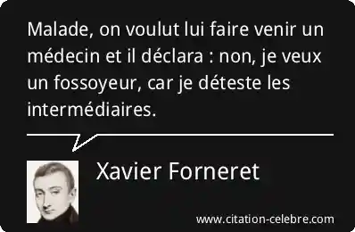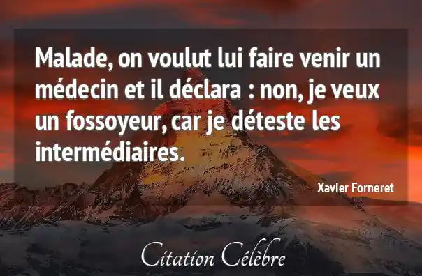 Malade, on voulut lui faire venir un médecin et il déclara : non, je veux un fossoyeur, car je déteste les intermédiaires.