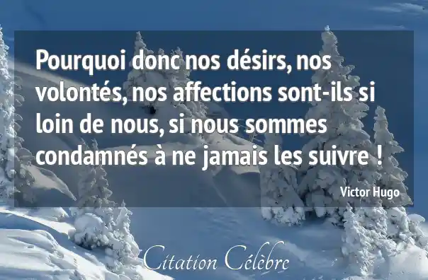 Pourquoi donc nos désirs, nos volontés, nos affections sont-ils si loin de nous, si nous sommes condamnés à ne jamais les suivre !
