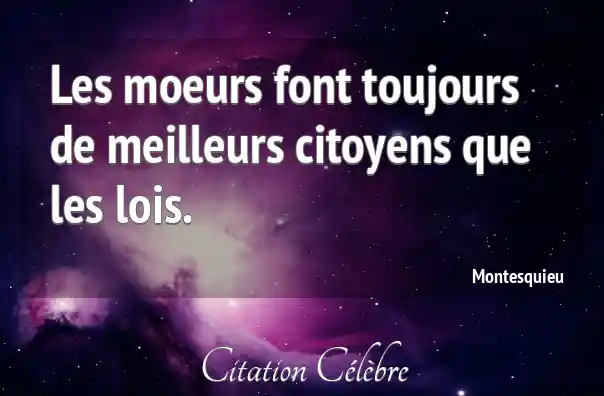 Les moeurs font toujours de meilleurs citoyens que les lois.