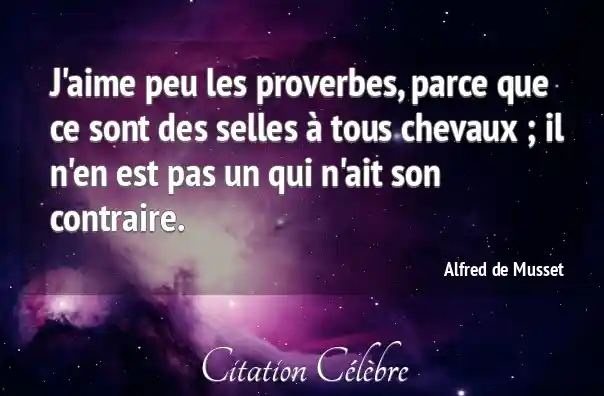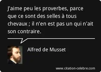 J'aime peu les proverbes, parce que ce sont des selles à tous chevaux ; il n'en est pas un qui n'ait son contraire.