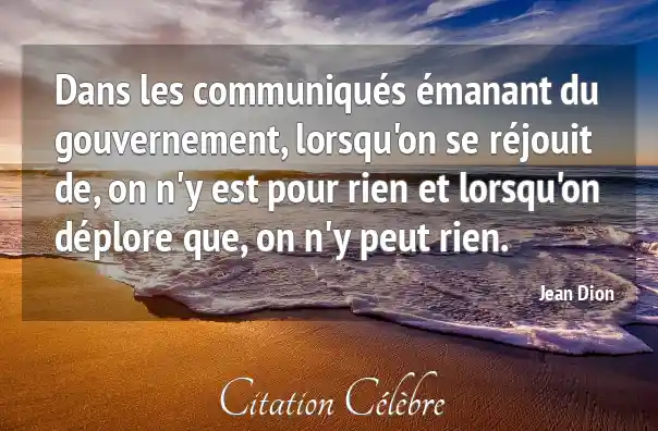 Dans les communiqués émanant du gouvernement, lorsqu'on se réjouit de, on n'y est pour rien et lorsqu'on déplore que, on n'y peut rien.