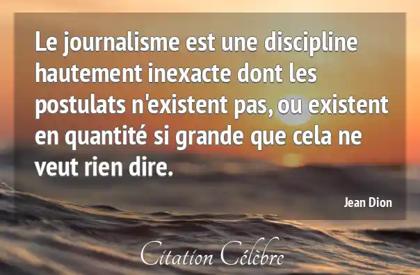 Le journalisme est une discipline hautement inexacte dont les postulats n'existent pas, ou existent en quantité si grande que cela ne veut rien dire.