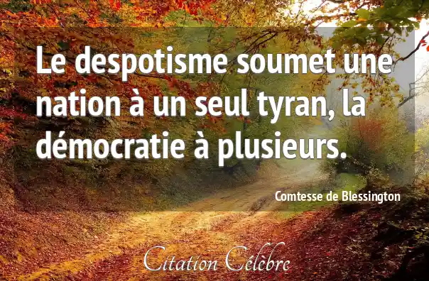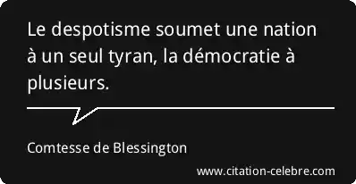 Le despotisme soumet une nation à un seul tyran, la démocratie à plusieurs.