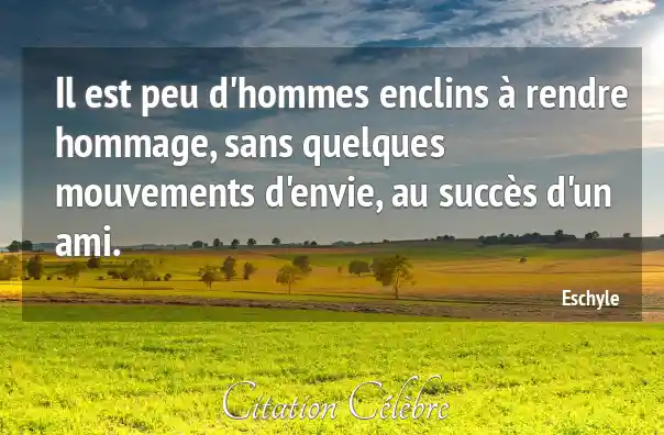Il est peu d'hommes enclins à rendre hommage, sans quelques mouvements d'envie, au succès d'un ami.
