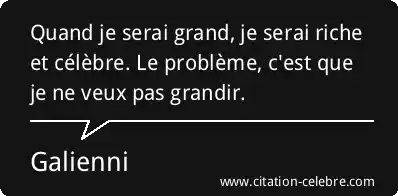 Quand je serai grand, je serai riche et célèbre. Le problème, c'est que je ne veux pas grandir.