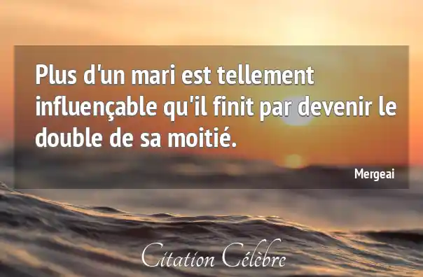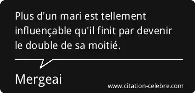 Plus d'un mari est tellement influençable qu'il finit par devenir le double de sa moitié.