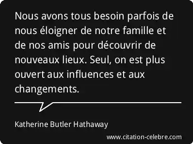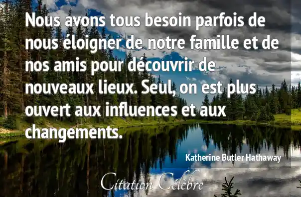 Nous avons tous besoin parfois de nous éloigner de notre famille et de nos amis pour découvrir de nouveaux lieux. Seul, on est plus ouvert aux influences et aux changements.