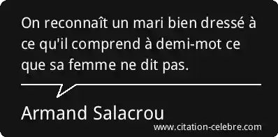 On reconnaît un mari bien dressé à ce qu'il comprend à demi-mot ce que sa femme ne dit pas.