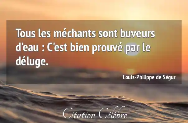Tous les méchants sont buveurs d'eau : C'est bien prouvé par le déluge.