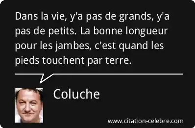 Dans la vie, y'a pas de grands, y'a pas de petits. La bonne longueur pour les jambes, c'est quand les pieds touchent par terre.