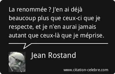 La renommée ? J'en ai déjà beaucoup plus que ceux-ci que je respecte, et je n'en aurai jamais autant que ceux-là que je méprise.