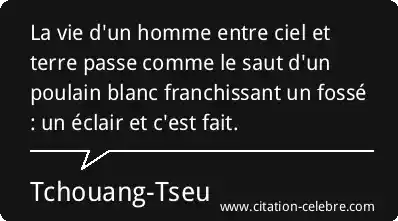 La vie d'un homme entre ciel et terre passe comme le saut d'un poulain blanc franchissant un fossé : un éclair et c'est fait.