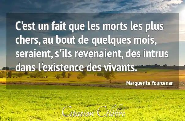 C'est un fait que les morts les plus chers, au bout de quelques mois, seraient, s'ils revenaient, des intrus dans l'existence des vivants.
