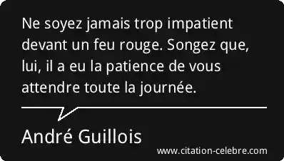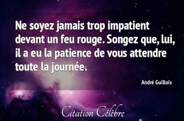 Ne soyez jamais trop impatient devant un feu rouge. Songez que, lui, il a eu la patience de vous attendre toute la journée.