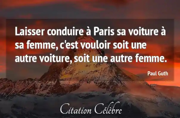 Laisser conduire à Paris sa voiture à sa femme, c'est vouloir soit une autre voiture, soit une autre femme.