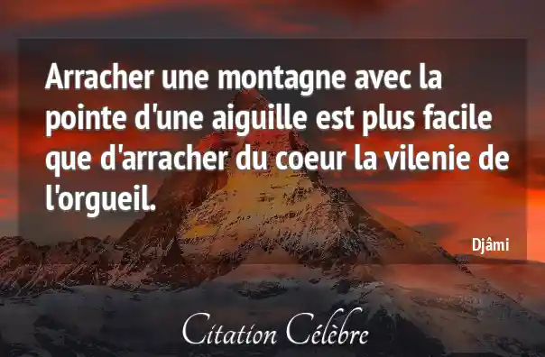 Arracher une montagne avec la pointe d'une aiguille est plus facile que d'arracher du coeur la vilenie de l'orgueil.