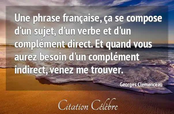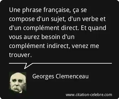 Une phrase française, ça se compose d'un sujet, d'un verbe et d'un complément direct. Et quand vous aurez besoin d'un complément indirect, venez me trouver.