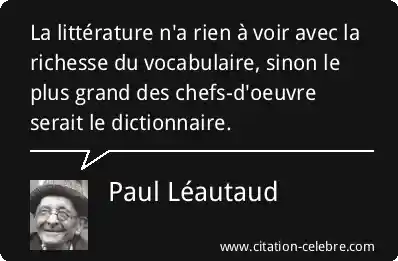 La littérature n'a rien à voir avec la richesse du vocabulaire, sinon le plus grand des chefs-d'oeuvre serait le dictionnaire.