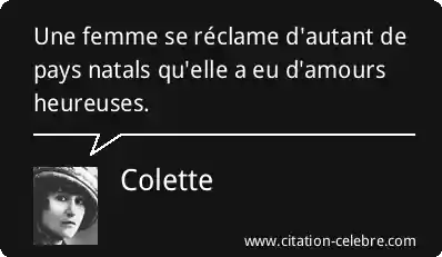 Citation Colette femme : Une femme se réclame d'autant de pays natals qu'elle a...