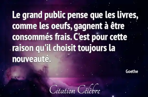 Le grand public pense que les livres, comme les oeufs, gagnent à être consommés frais. C'est pour cette raison qu'il choisit toujours la nouveauté.