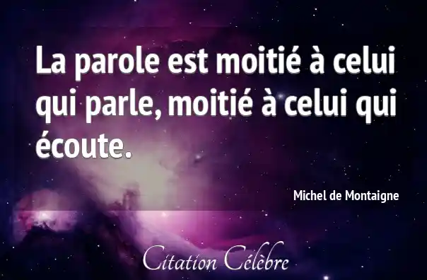 La parole est moitié à celui qui parle, moitié à celui qui écoute.