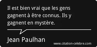 Il est bien vrai que les gens gagnent à être connus. Ils y gagnent en mystère.