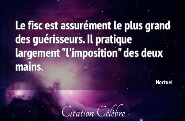 Le fisc est assurément le plus grand des guérisseurs. Il pratique largement "l'imposition" des deux mains.
