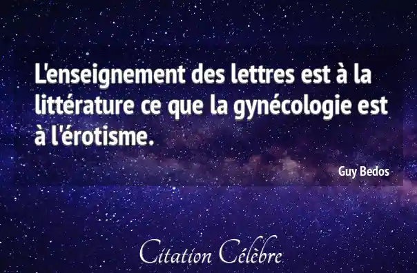 L'enseignement des lettres est à la littérature ce que la gynécologie est à l'érotisme.