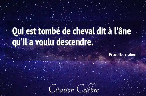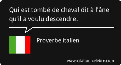 Proverbe  Italien Dit : Qui est tombé de cheval dit à l'âne qu'il a...
