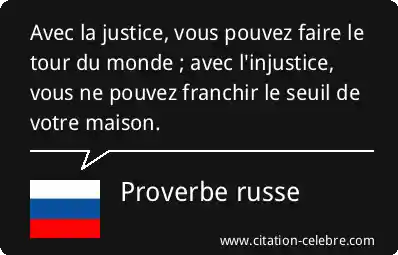 Avec la justice, vous pouvez faire le tour du monde ; avec l'injustice, vous ne pouvez franchir le seuil de votre maison.