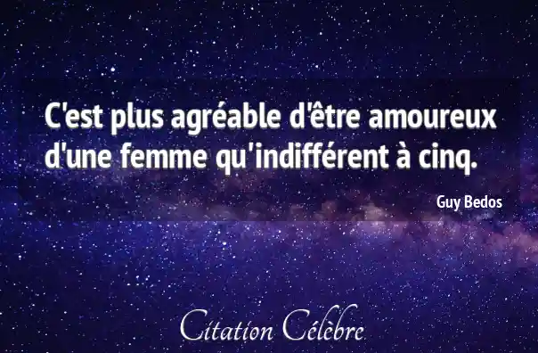 C'est plus agréable d'être amoureux d'une femme qu'indifférent à cinq.
