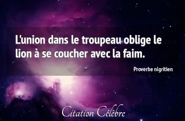 L'union dans le troupeau oblige le lion à se coucher avec la faim.