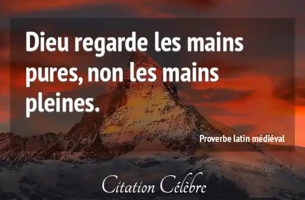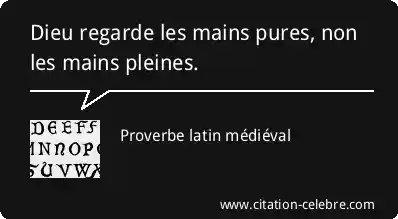 Proverbe  Latin médiéval Dieu : Dieu regarde les mains pures, non les mains pleines....