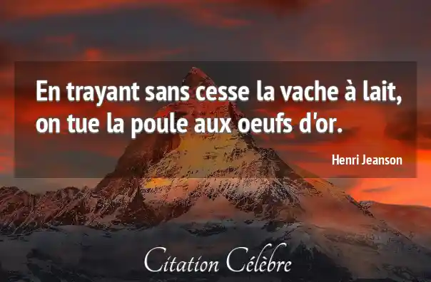 En trayant sans cesse la vache à lait, on tue la poule aux oeufs d'or.