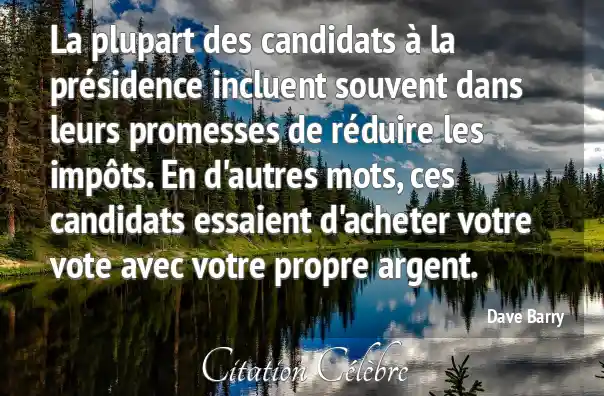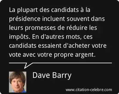 La plupart des candidats à la présidence incluent souvent dans leurs promesses de réduire les impôts. En d'autres mots, ces candidats essaient d'acheter votre vote avec votre propre argent.