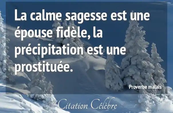 La calme sagesse est une épouse fidèle, la précipitation est une prostituée.