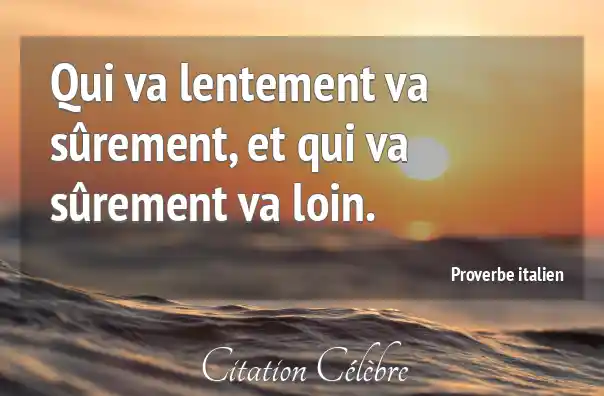Qui va lentement va sûrement, et qui va sûrement va loin.