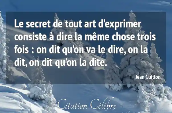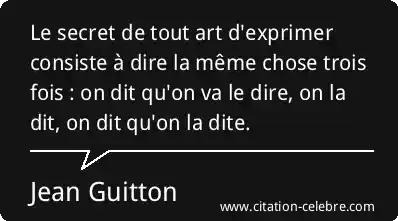Le secret de tout art d'exprimer consiste à dire la même chose trois fois : on dit qu'on va le dire, on la dit, on dit qu'on la dite.