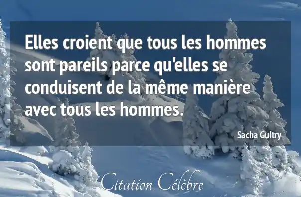Elles croient que tous les hommes sont pareils parce qu'elles se conduisent de la même manière avec tous les hommes.