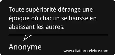 Toute supériorité dérange une époque où chacun se hausse en abaissant les autres.