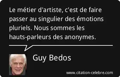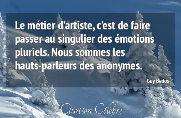 Le métier d'artiste, c'est de faire passer au singulier des émotions pluriels. Nous sommes les hauts-parleurs des anonymes.