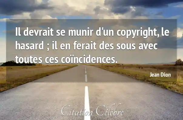 Il devrait se munir d'un copyright, le hasard ; il en ferait des sous avec toutes ces coïncidences.