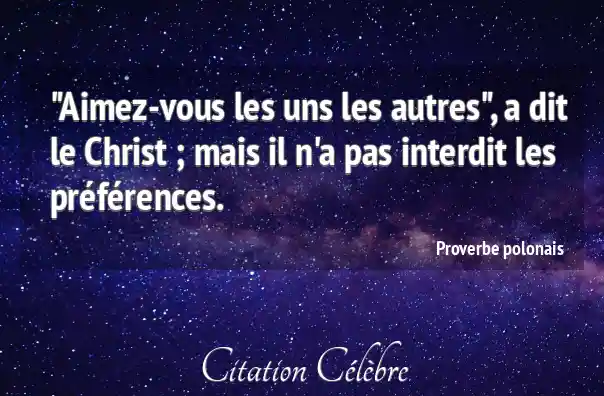 "Aimez-vous les uns les autres", a dit le Christ ; mais il n'a pas interdit les préférences.