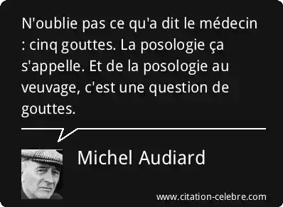 N'oublie pas ce qu'a dit le médecin : cinq gouttes. La posologie ça s'appelle. Et de la posologie au veuvage, c'est une question de gouttes.