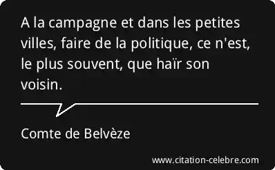 A la campagne et dans les petites villes, faire de la politique, ce n'est, le plus souvent, que haïr son voisin.