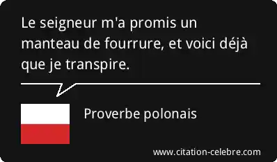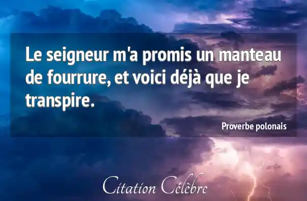 Le seigneur m'a promis un manteau de fourrure, et voici déjà que je transpire.