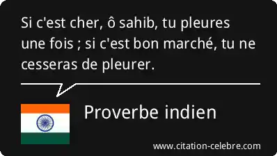 Si c'est cher, ô sahib, tu pleures une fois ; si c'est bon marché, tu ne cesseras de pleurer.