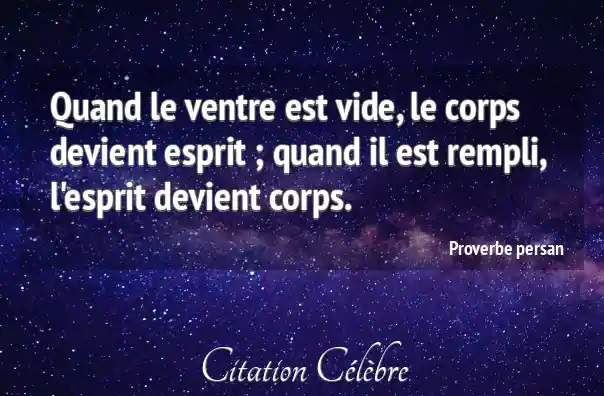 Quand le ventre est vide, le corps devient esprit ; quand il est rempli, l'esprit devient corps.