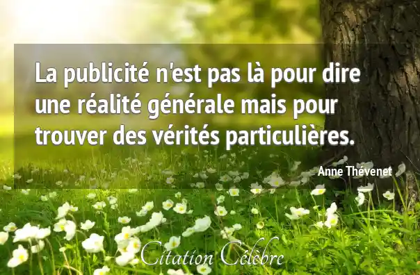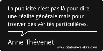 La publicité n'est pas là pour dire une réalité générale mais pour trouver des vérités particulières.